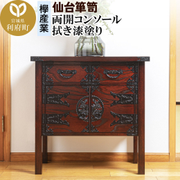 ■【ふるさと納税】仙台箪笥 両開コンソール 拭き漆塗り (申込書返送後、1ヶ月〜6ヶ月程度でお届け)