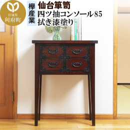 ■【ふるさと納税】仙台箪笥 四ツ抽コンソール85 拭き漆塗り (申込書返送後、1ヶ月〜6ヶ月程度でお届け)