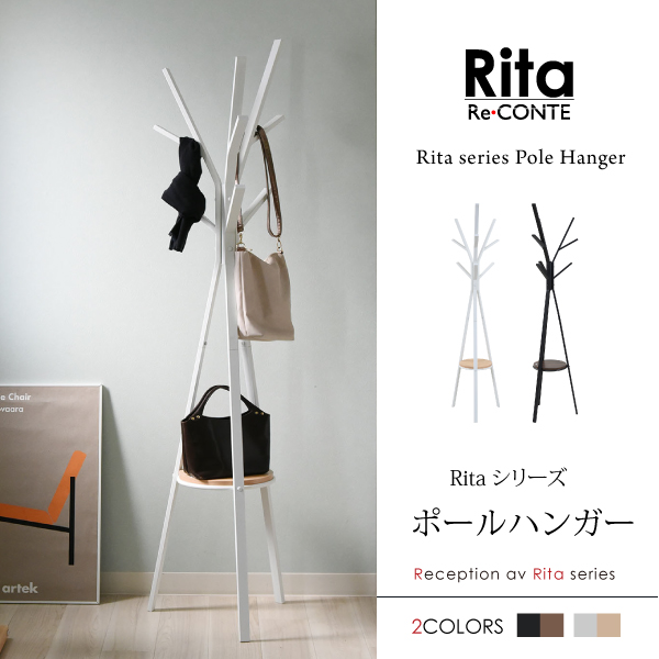 ■ポールハンガー Ritaシリーズ DRT-1006 2色対応 玄関収納 リビング収納 小物置き 棚 コート 洋服掛け カバン掛け 帽子 木製 スチール ホ