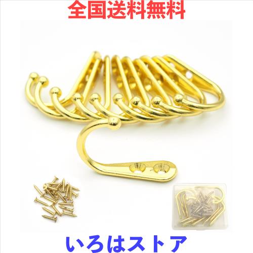 ■Hymyily 10個 亜鉛合金壁掛け フック アンティーク フック 高耐荷重 金具 かべかけフック キッチン 台所 壁かけ 洋服掛け (ゴールド)