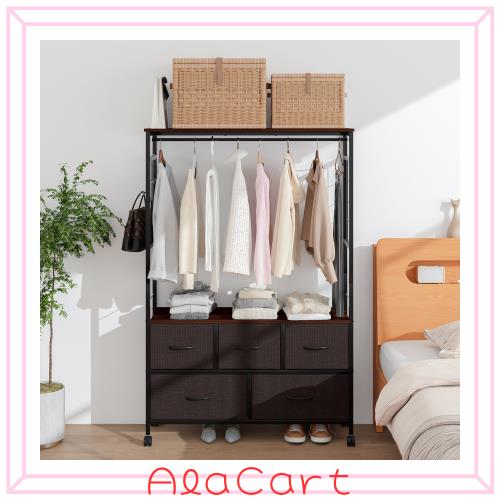 ■LunarLight ハンガーラック 幅100奥行30高さ150cm パイプハンガー ワードローブ クローゼット引き出し 洋服掛け 衣類コンパクトで収納付