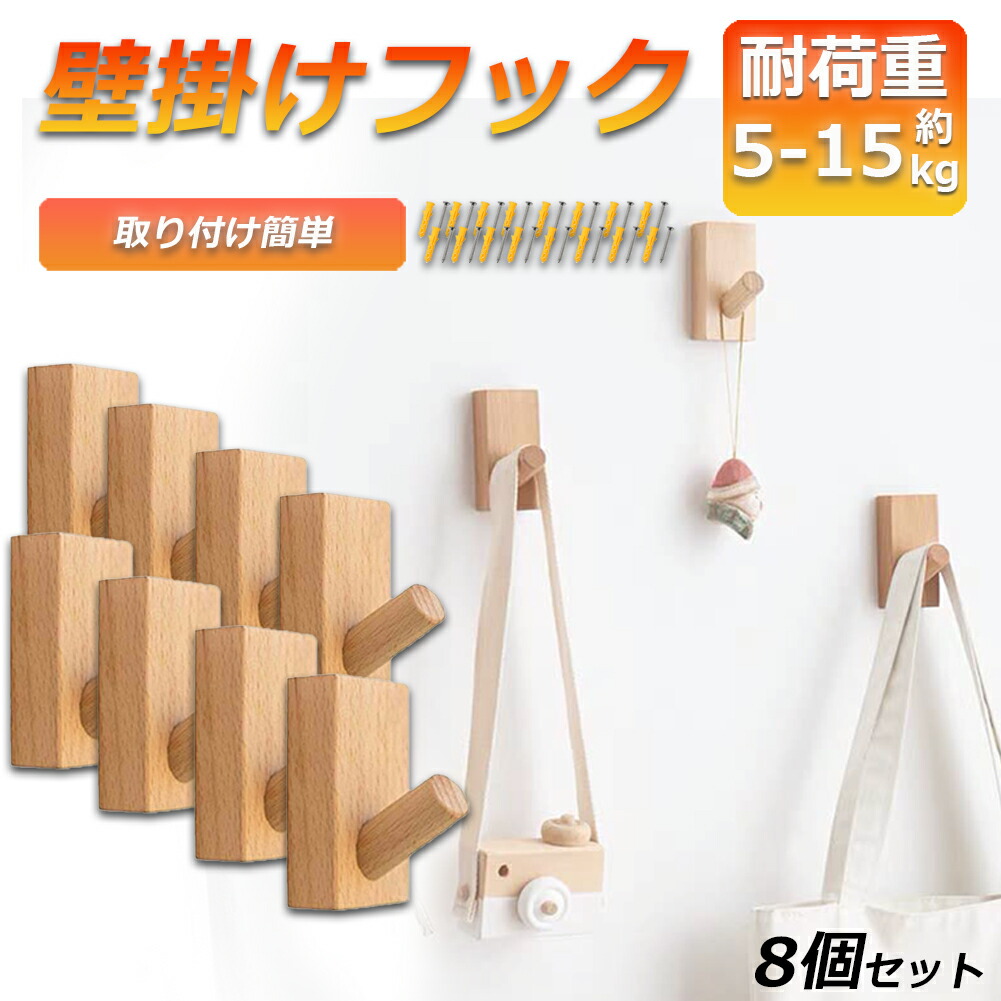 ■木製フック 壁フック ウォールフック 8個セット おしゃれフック 壁掛けフック ウォールハンガー 洋服掛け 帽子掛け 帽子フック 装飾壁掛