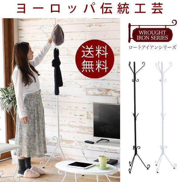 女性のお部屋にぴったりなポールハンガー。クラシックな印象を与えるロートアイアンの曲線が特徴。※撮影時の小物は付属しません。配達業者を指定いただくことはできません。沖縄・離島への配送は別途配送料が必要です。※別途送料が発生する場合は後ほどご連絡させていただきます。タイミングによっては在庫切れの場合があります。