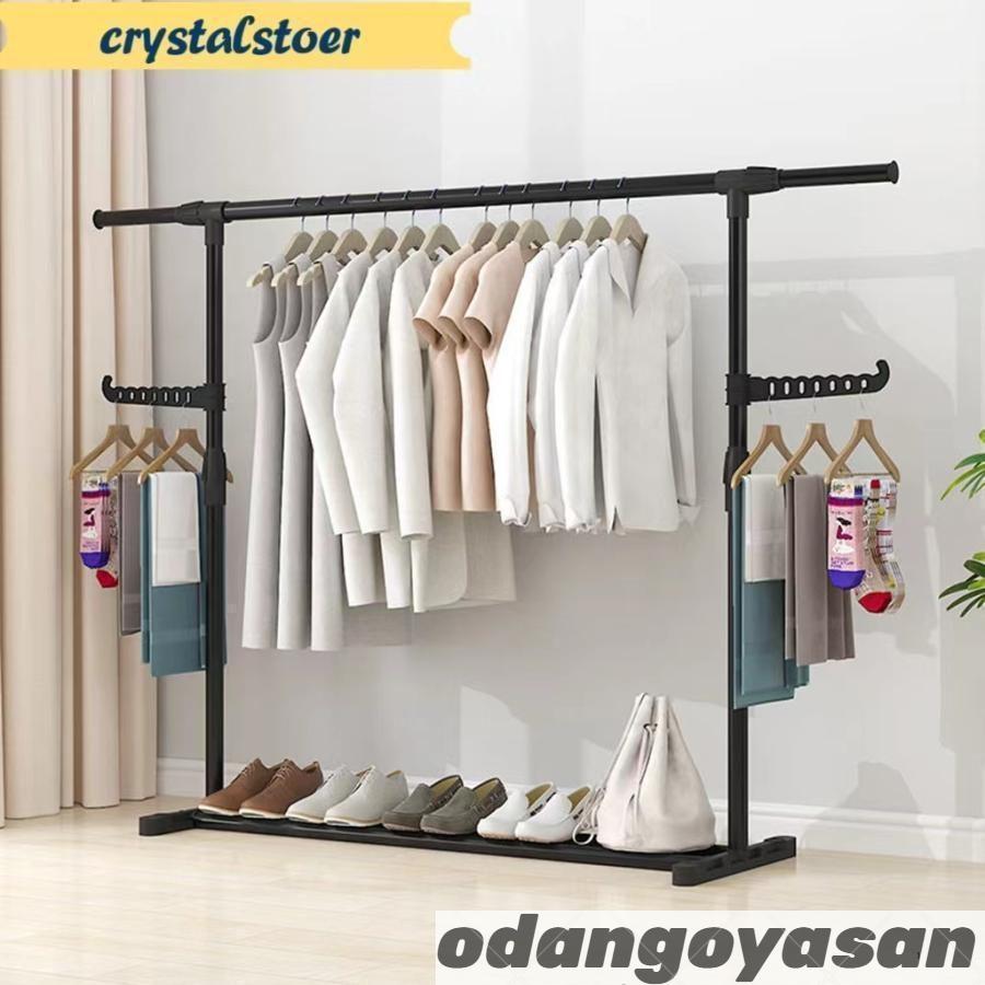 ■2023新作 ハンガーラック フック付き 衣類収納 洋服掛け 高耐荷重 大容量 頑丈 2段 シンプル ナチュラル 多機能 パイプハンガー crystals
