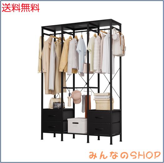 ■SINNONAKA ハンガーラック 引き出し付き ワードローブ 頑丈 洋服ラック 大容量 収納付き 洋服収納 クローゼット 収納ラック 洋服掛け 衣