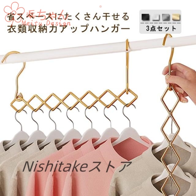 ■ハンガー 3個セット 洋服掛け 物干しスタンド おしゃれ 衣類収納 衣類ハンガー 7連ハンガー スペース 7連ハンガー 軽量 洋服 洗濯 押し入