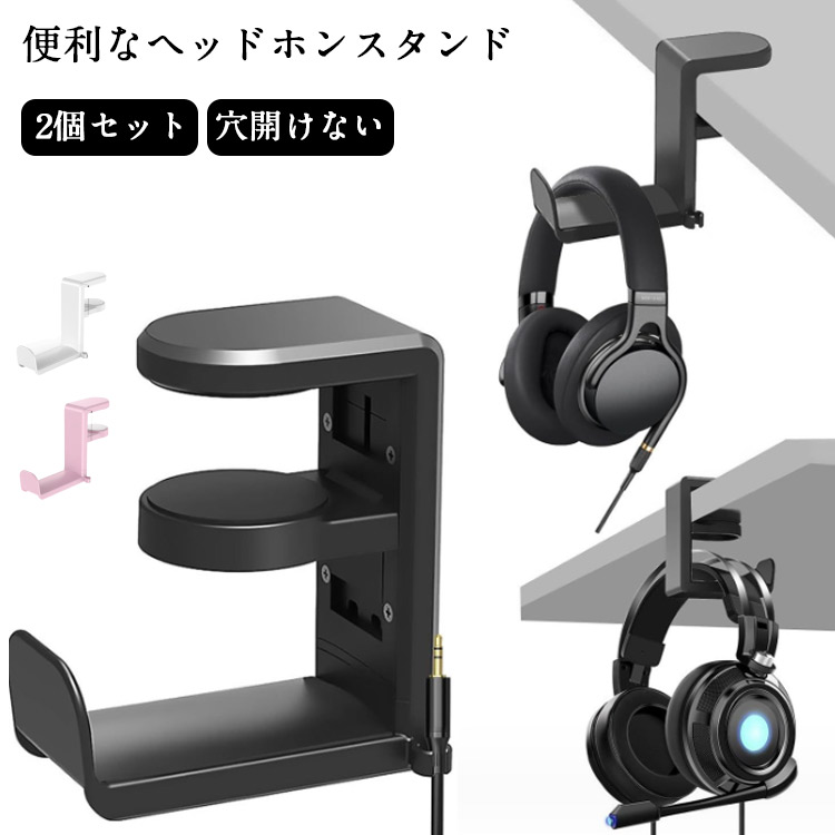 ■テーブル コートハンガー 2点セット Sじ字 洋服掛け 2点セット ヘッドホンスタンド コード クランプ 机 後付 ヘッドホンかけ 穴開けない