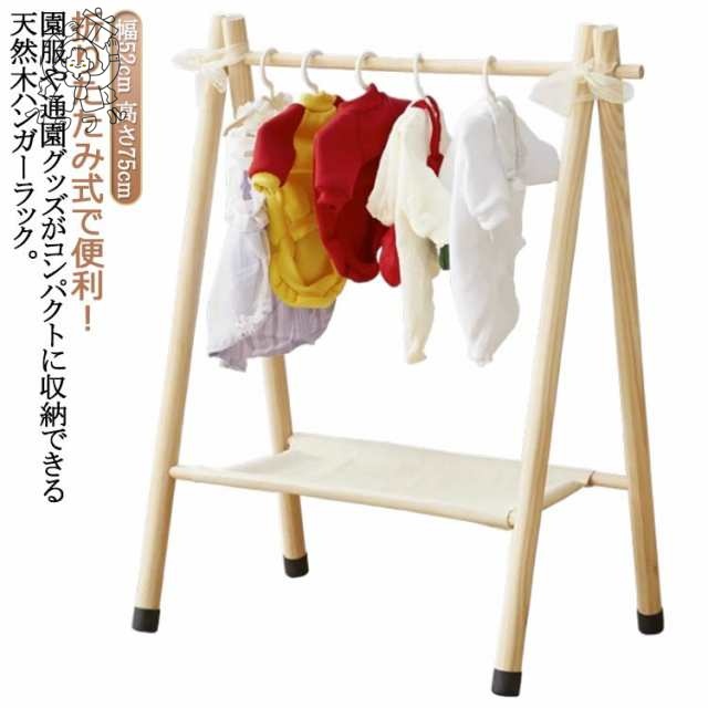 【パワフル】ハンガーラック 木製 衣類収納 キッズ 幅52cm/高さ75cm 子供 折りたたみ コートハンガー ハンガー ラック ハンガーポール 洋服掛け キッズハンガーラック ポールハンガー 子供服 頑丈 コンパクト 省スペース 収納 子供部屋 リビング