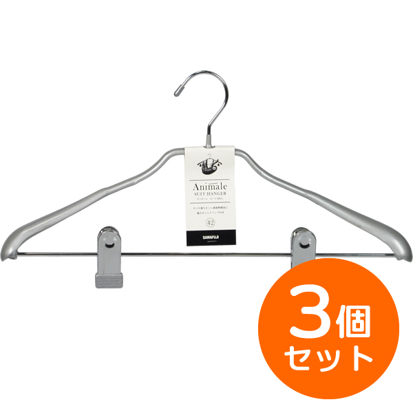 ■スーツハンガー シルバー 3個セット AN-02 | 滑らない スーツハンガー 紳士 背広 衣類 洋服掛け おしゃれ 滑り止め ハンガーのプロが作