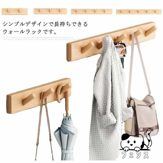 壁掛けフック ウォールフック ウォールハンガー 整理整頓 収納フック 木製 ネジ付き 帽子掛け 洋服掛け コート掛け 省スペース 耐荷重 ナチュラル 玄関 リビング 自宅用 2連/3連/4連/5連
