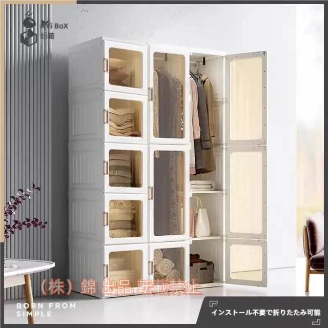 ■ワードローブ クローゼット15格 押入れ収納 衣類収納 収納棚 収納ボックス 小物収納 洋服掛け 株式会社錦扉付き 折り畳み式 大容量 組立