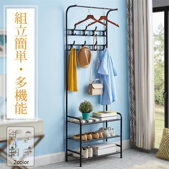 ■新登場 ハンガーラック スリム おしゃれ 洋服掛け フック付き 3段棚付き 帽子 組立簡単 衣類 収納ラック 省スペース 多機能 玄関 部屋 送