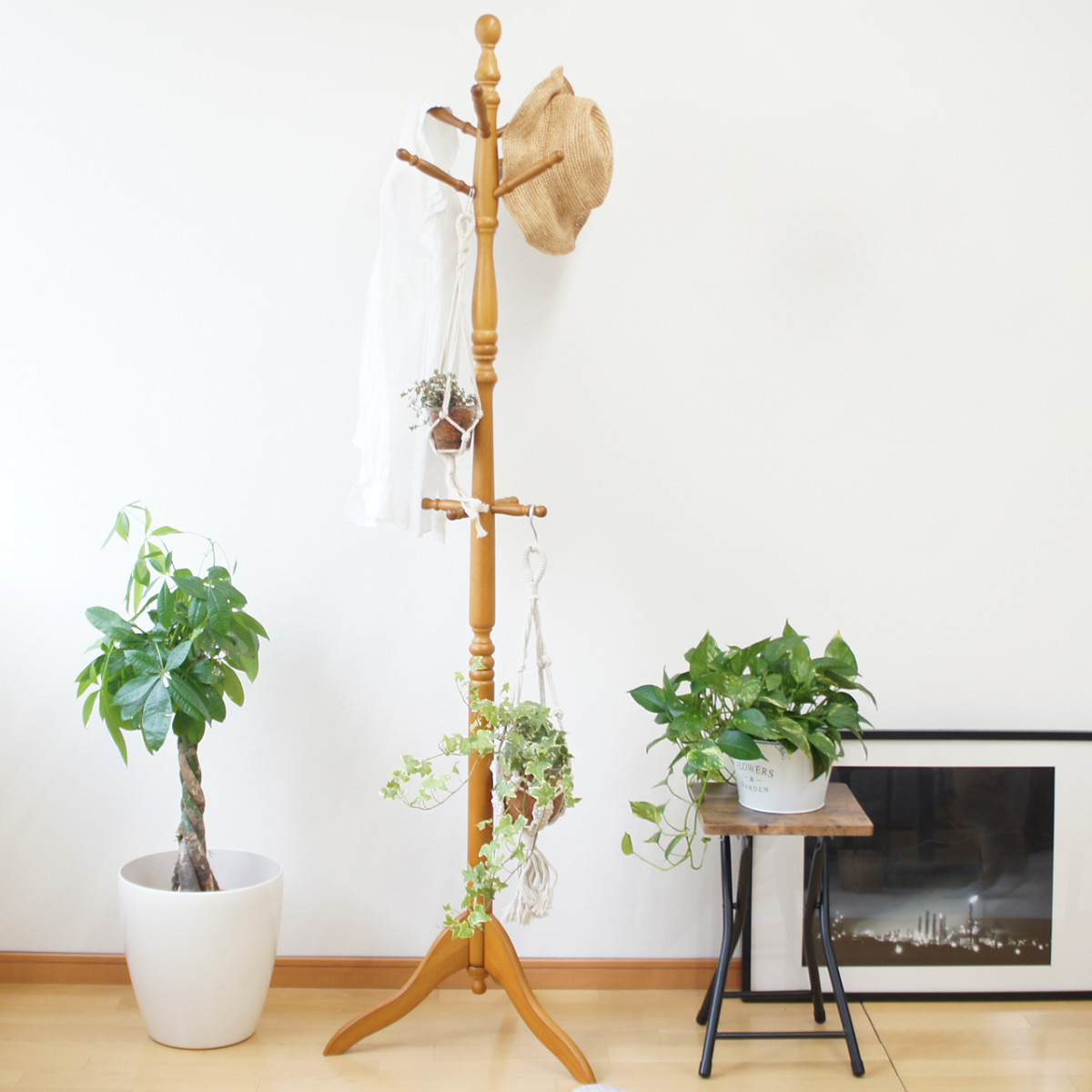 ■ポールハンガー 木製 ポーチラック ( ハンガーラック コートハンガー 収納 天然木 360度回転 洋服掛け コート掛け ポールスタンド 高さ1