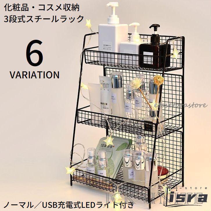 ■棚 ラック コスメ収納 収納 段 卓上 デスク上 大容量 小物入れ 調味料 キッチン 台所 洗面所 浴室 LEDライト リチウム