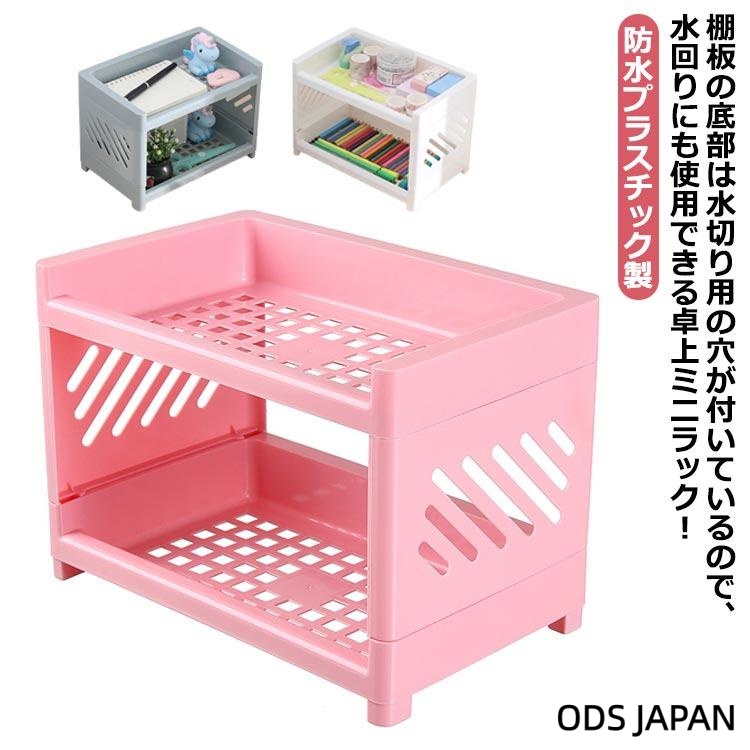 ■2個セット 卓上 ミニラック 2段 机上 棚 ラック スリム メッシュ 防水 水切り キッチンラック バスラック 浴室 洗面所 水回り 化粧品 コ
