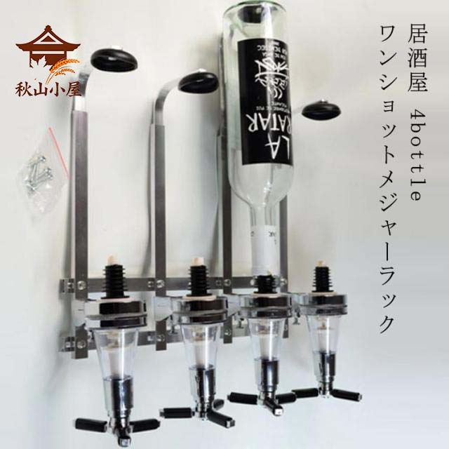 ワンショットメジャー ラック 壁掛け式 4連ボトルタイプ ボトルディスペンサー 計量 BAR 居酒屋 お店 ウイスキー お酒 キッチン用品 食器 調理器具 ワイン バー 酒用品 ボトルホルダー