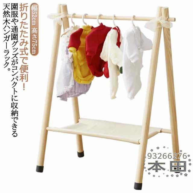 折りたたみ キッズハンガーラック 木製 幅52cm/高さ75cm ハンガーラック 子供 キッズ コートハンガー ハンガー ラック 子供服 洋服掛け ハンガーポール ポールハンガー 衣類収納 頑丈 コンパクト 省スペース 収納 子供部屋 リビング