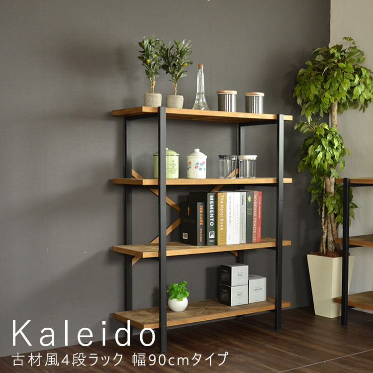 ■Kaleido(カレイド) 古材風4段ラック 幅90cmタイプ ラック 棚 シェルフ オープンシェルフ オープンラック 木製 デ