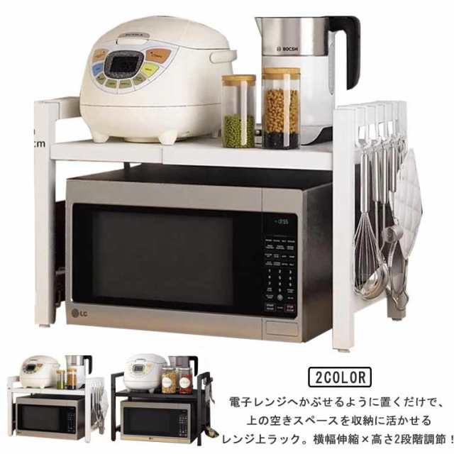 商品説明 レンジ上ラック レンジ上 ラック キッチンラック 伸縮 幅42?68cm 卓上 高さ調整 フック付き トースターラック 伸縮式 レンジ台 キッチン