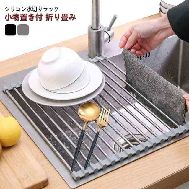 ■シンク上 水切りラック あす楽 たためる 小物置き付 水切りかご 水切りラック ラック おりたたみ 水切り ライトグレー 折りたたみ マット