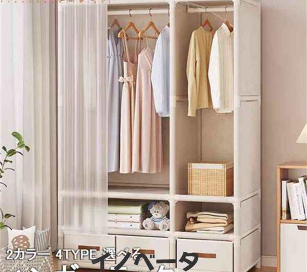 ■ハンガーラック おしゃれ 収納 カバー付き 引き出し付き スリム ハンガー掛け クローゼット コート スチール シェルフ ラック 省スペース