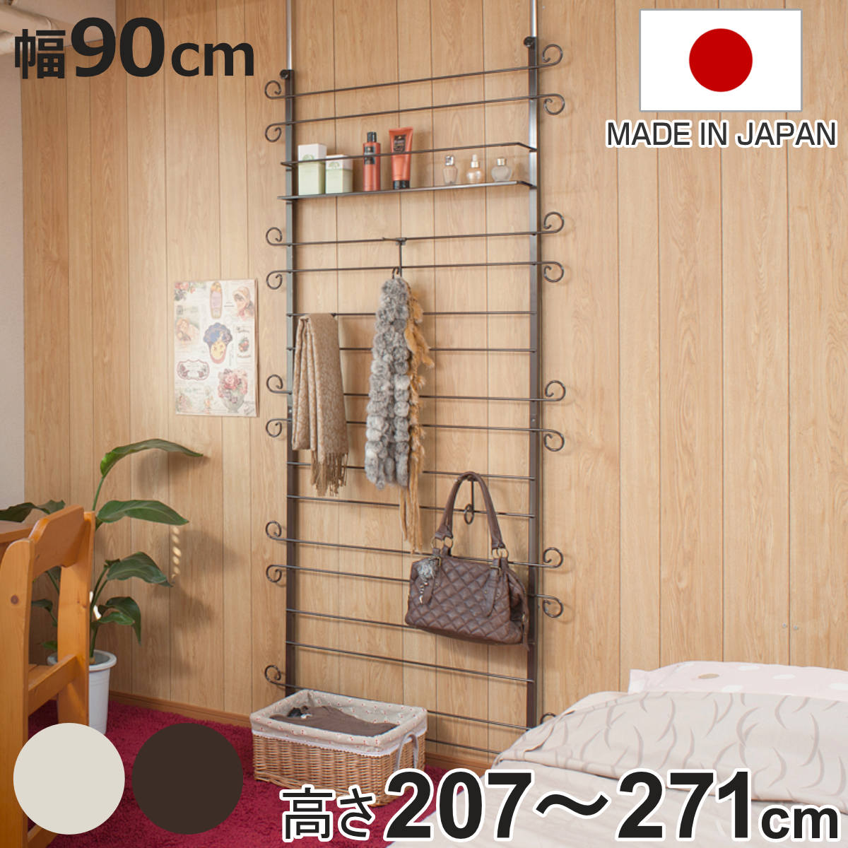 ■突っ張りラック ラダーラック カーリーデザイン 幅90cm ( 壁面収納 ウォールラック つっぱり 突っ張り式 ラック 壁面 収納 突ぱり 壁面