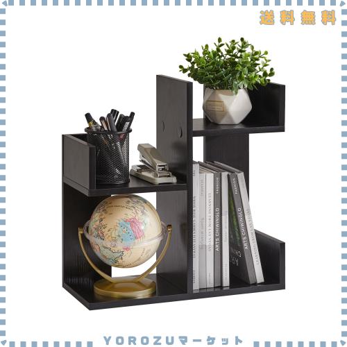 ◆商品名:Aibiju 本棚 卓上 低い 机上 ラック 木製 幅40×奥行18×高さ41cm 文房具 収納 可愛い本棚 二段 サボテン形 ブックエンド 本立 黒 YD-DSR
