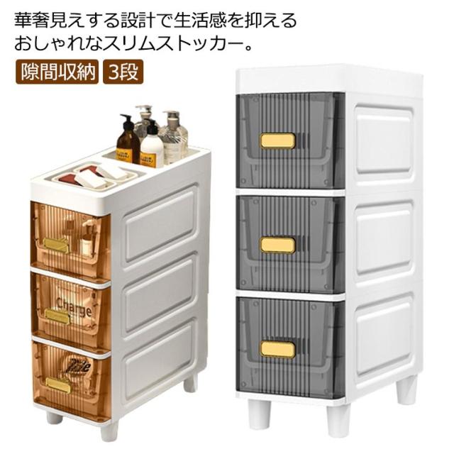 隙間収納 スリムストッカー 幅18cm 3段 収納ストッカー すき間収納 ラック 引き出し キッチン収納 シンク横収納 すきま すき間 スリム収納ラック洗面所台所 サニタリーコンパクトキッチンラック料理 食品庫スリムチェスト