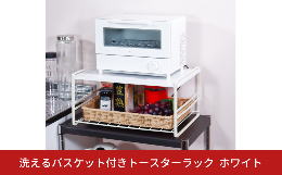 ■【ふるさと納税】洗えるバスケット付きトースターラック WH 燕三条 トースター ラック <BR>レンジ上ラック トースター ラック おしゃれ
