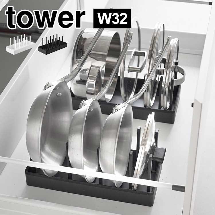 ■山崎実業 シンク下幅調節鍋蓋&フライパン収納スタンド タワー W32 1359 1360 tower 鍋置き ラック 収納 スタンド 食器 幅 調節可能 フラ