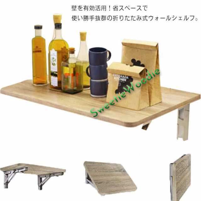 ウォールシェルフ 木製 壁掛け 棚 折りたためる ブラケット付き 折りたたみ式 壁面 ラック 置物 ディスプレイ棚 玄関 キッチン 収納 リビング