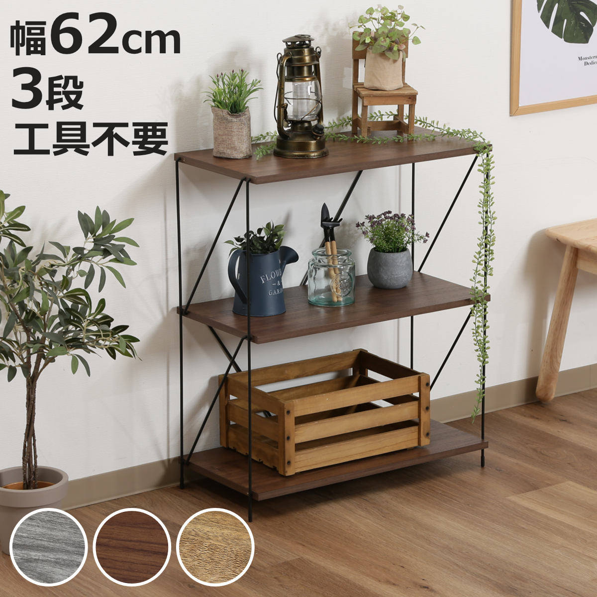 ■オープンラック 幅62cm 3段 簡単組み立て ワイヤーラック EZBO ( 工具不要 シェルフ ラック 棚 収納 ディスプレイラック 飾り棚 オープ