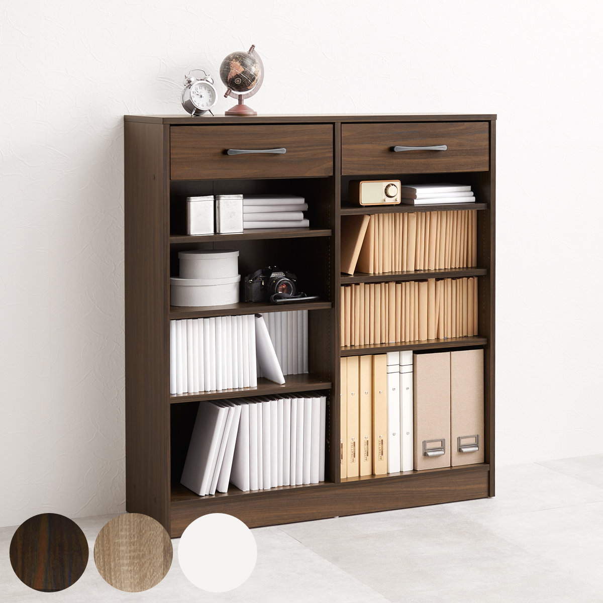 ■1cmピッチ可動 本棚 幅90cm 可動棚6枚 引出し付 ( ラック 収納 棚 1cmピッチ 可動棚 A4 A5 A4対応 デスクサイド シンプル ブラウン ナチ