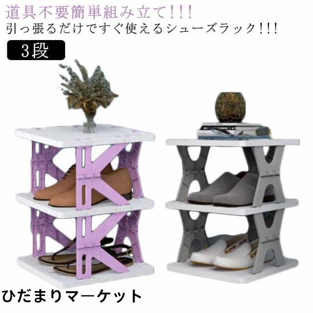■伸縮 シューズラック 省 スペース 折り畳み 折りたたみ 靴箱 棚 3段 ラック スリム 下駄箱 下駄箱 靴棚 収納ボックス 玄関収納 省スペー
