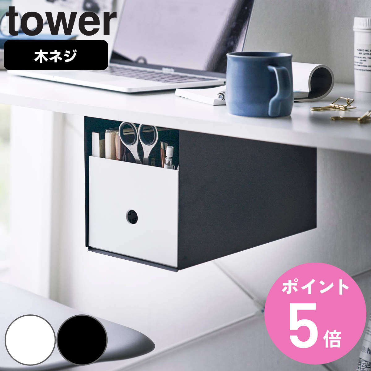 ■tower 山崎実業 テーブル下収納ボックスラック タワー ( タワーシリーズ テーブル下 収納ボックス デスク下 ラック テーブル下収納 ダイ