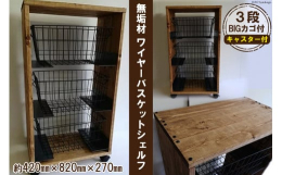 ■【ふるさと納税】無垢材 ワイヤーバスケット シェルフ 3段 BIG カゴ付|新星金属製作所 大阪府 守口市 天然木 ナチュラル ラック リビン