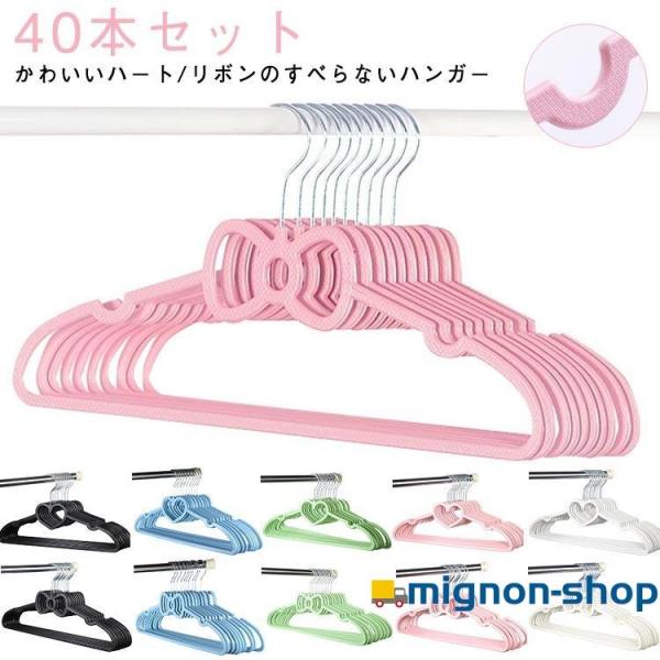 ■40本セット ズボン ハンガー すべらないハンガー ハート リボン ラック 収納 カラー スカート 滑らない すべらない オシャレ すべらない