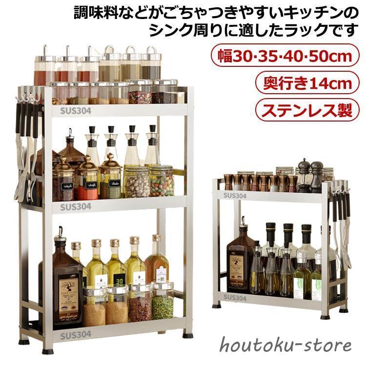 ■キッチンラック 2段 3段 台所 キッチン 卓上 ラック 棚 スリム ステンレス オープンラック シェルフ 調味料ラック スパイスラック カウン