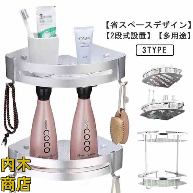 お風呂 三角 バスルーム 浴室用 棚 シャンプーラック 2個セット ステンレスラック 簡単収納 強力粘着固定 錆びない 穴あけ不要 コーナーラック 水切り設計 サビ防止 ラック バスラック 浴室用コーナーラック バス用品 壁掛け