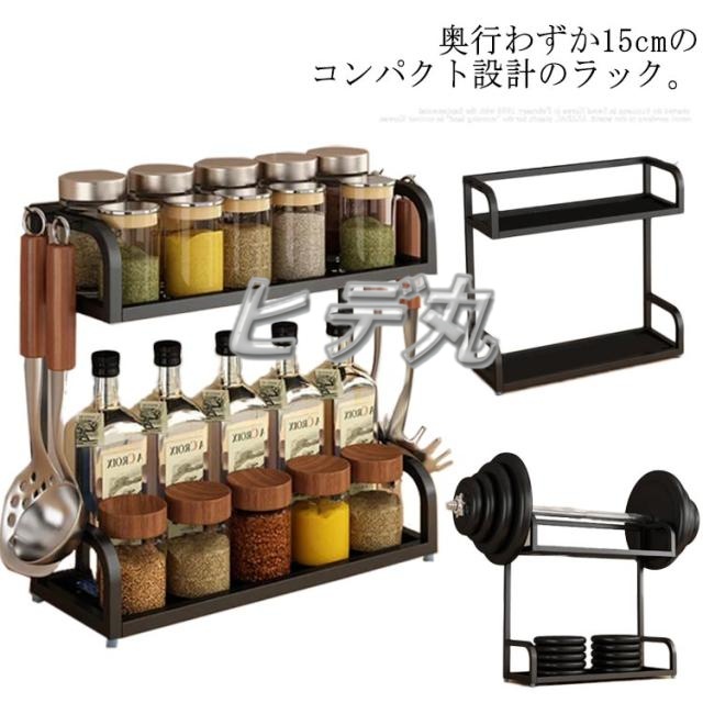 ■スリム 調味料ラック 奥行き15cm 2段 おしゃれ スパイスラック 調味料 収納 ラック 北欧 シンク上ラック 卓上ラック キッチン収納 省スペ