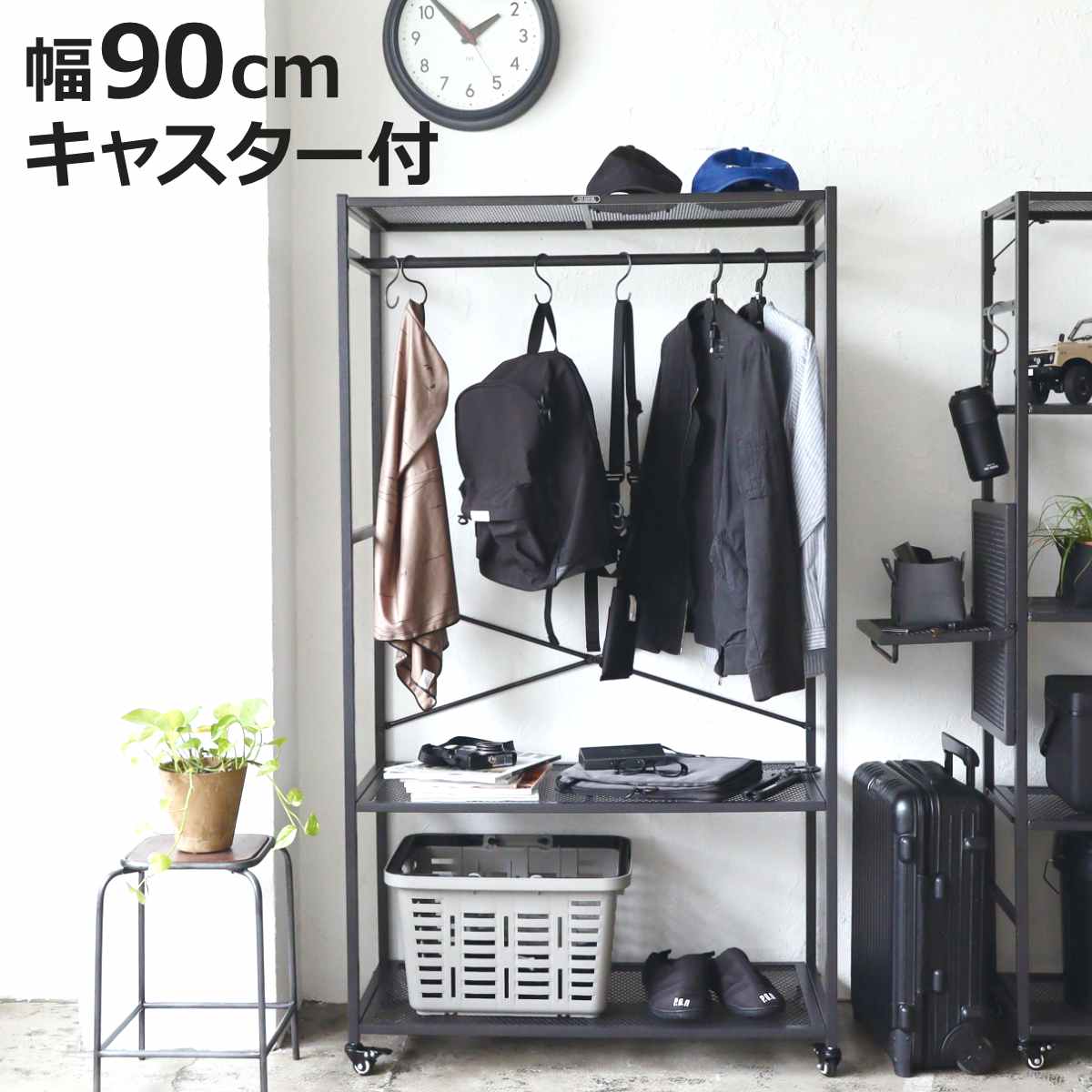 ■ハンガーラック ポストジェネラル 幅90cm 5段 スチール 収納棚 ラック キャスター付き ( 棚 衣類掛け コート掛け 無骨 POST GENERAL メ