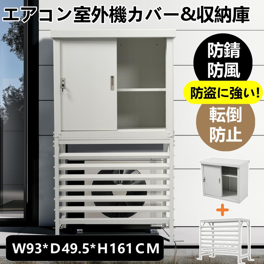エアコン室外機カバー 室外機ラック 収納庫付き エアコン 日よけ 棚 収納 ラック スチール 室外機カバー 目