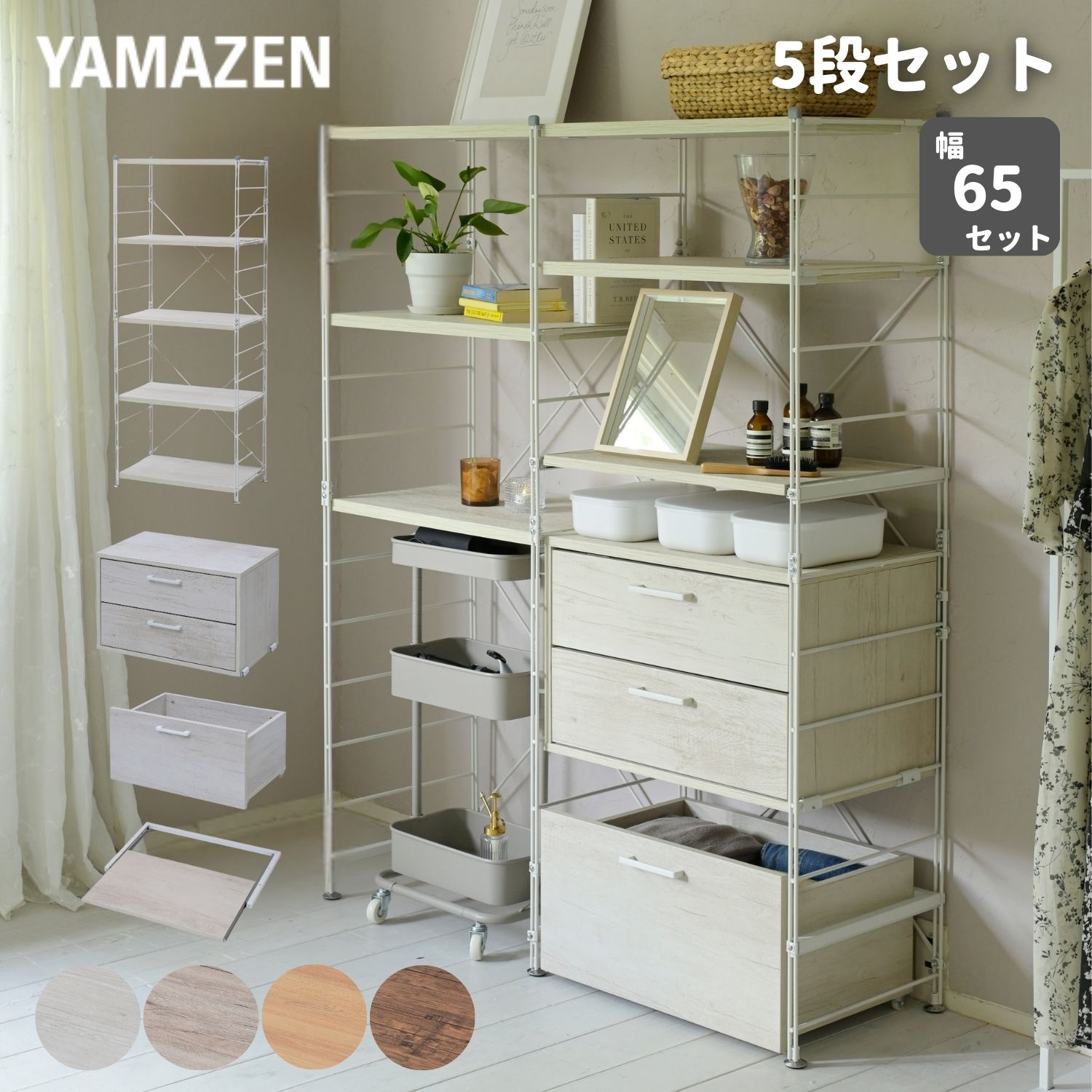 ■ラック キッチンラック 木製棚板 5段セット 本体幅65cm ウッドシェルフ ディスプレイラック スチールラック ワイヤーラック オープンラ