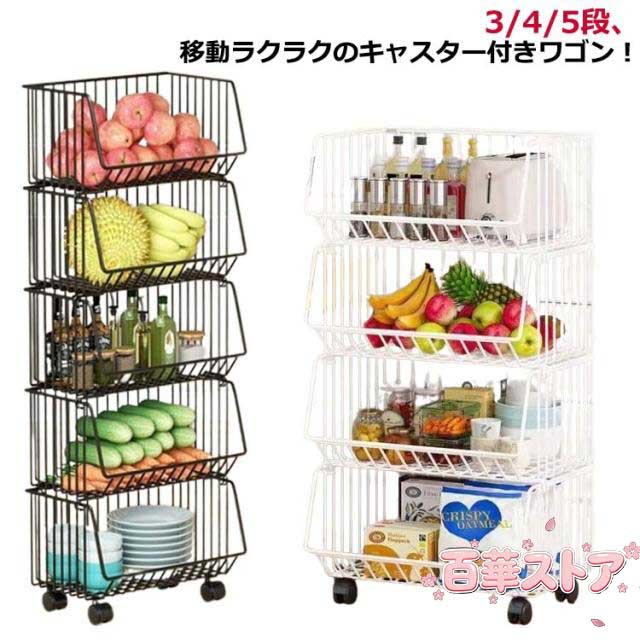 ■キッチンワゴン 5段 棚 キッチンワゴン 4段 収納メッシュ スチール おしゃれ ラック バスケット 収納用品 シンプル カート キャスター付