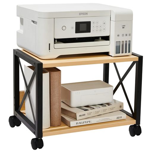 ■JIYUNII プリンター台 木製 2段 ラック ワゴン 卓上収納 机上 & 机下台 キャスター付き スタンド 幅44×奥行30×高さ31CM オフィス 部屋 収