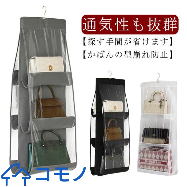 バッグ収納 ハンガー バッグ 収納 吊り下げ 無地 クローゼット 三段 袋 バッグ収納ホルダー ラック 中身可視 棚 カバン収納 フック付き 壁掛け 吊り下げ式 防塵 整理整頓 お片付け 省スペース 防湿 防カビ 型崩れ防止