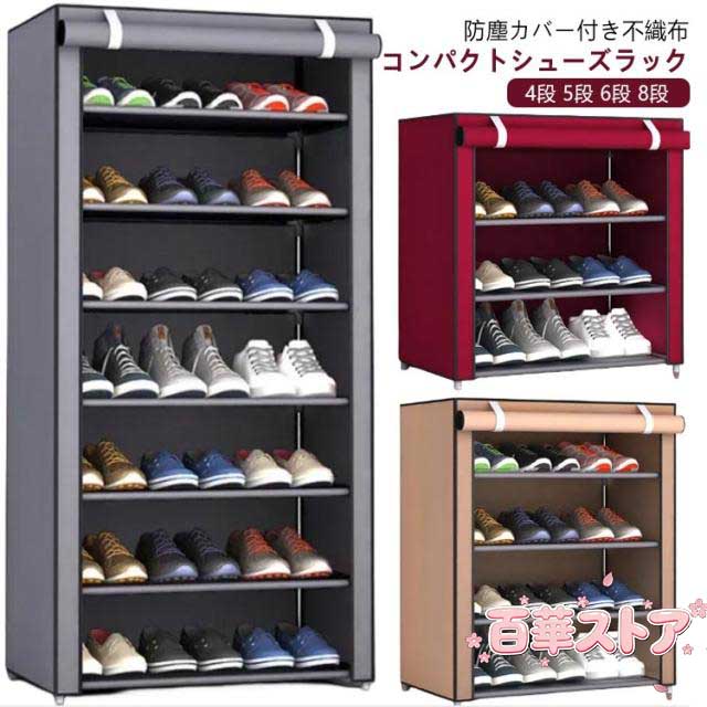シューズ 防塵 無地 下駄箱 ラック コンパクトシューズラック コンパクト カバー付き 下駄箱 省スペース 玄関収納 狭い玄関 グレー シューズ棚 ブラウン レッド 靴棚 おしゃれ 大容量 組み立て式 靴箱 靴収納