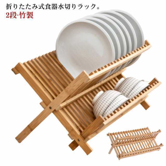 ■水切りラック 2段 折りたたみ スリム 食器棚 皿立て お皿 茶碗 食器 水切り ラック 竹製 台所 食器収納 棚 大容量 水切りカゴ 折り畳み