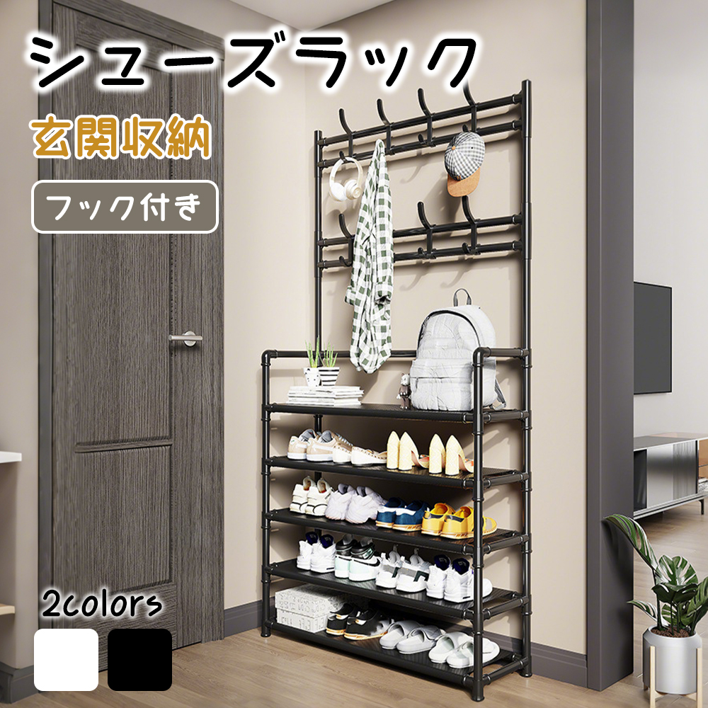 ■【5段 幅60cm】靴ラック シューズラック 玄関収納ラック 5段 収納 ラック オープンタイプ スリム 省スペース フック付き 玄関 ダイニング