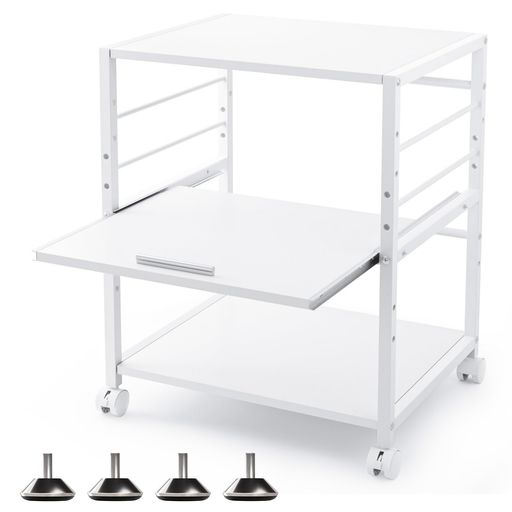 ■DEWEL プリンター台 ラック ワゴン 木製 3段 キャスター付き 中棚スライド式 カート 机下台 サイドワゴン 棚板高さ調節可能 プリンター収